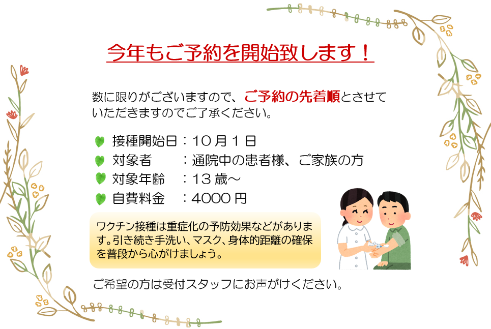 *日中の外来の混雑状況により、折り返し予約日のご案内をさせていただく場合がございます。